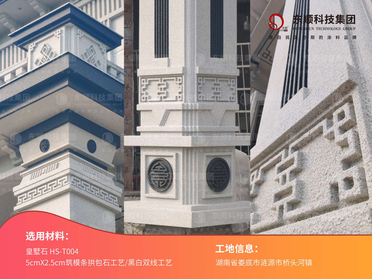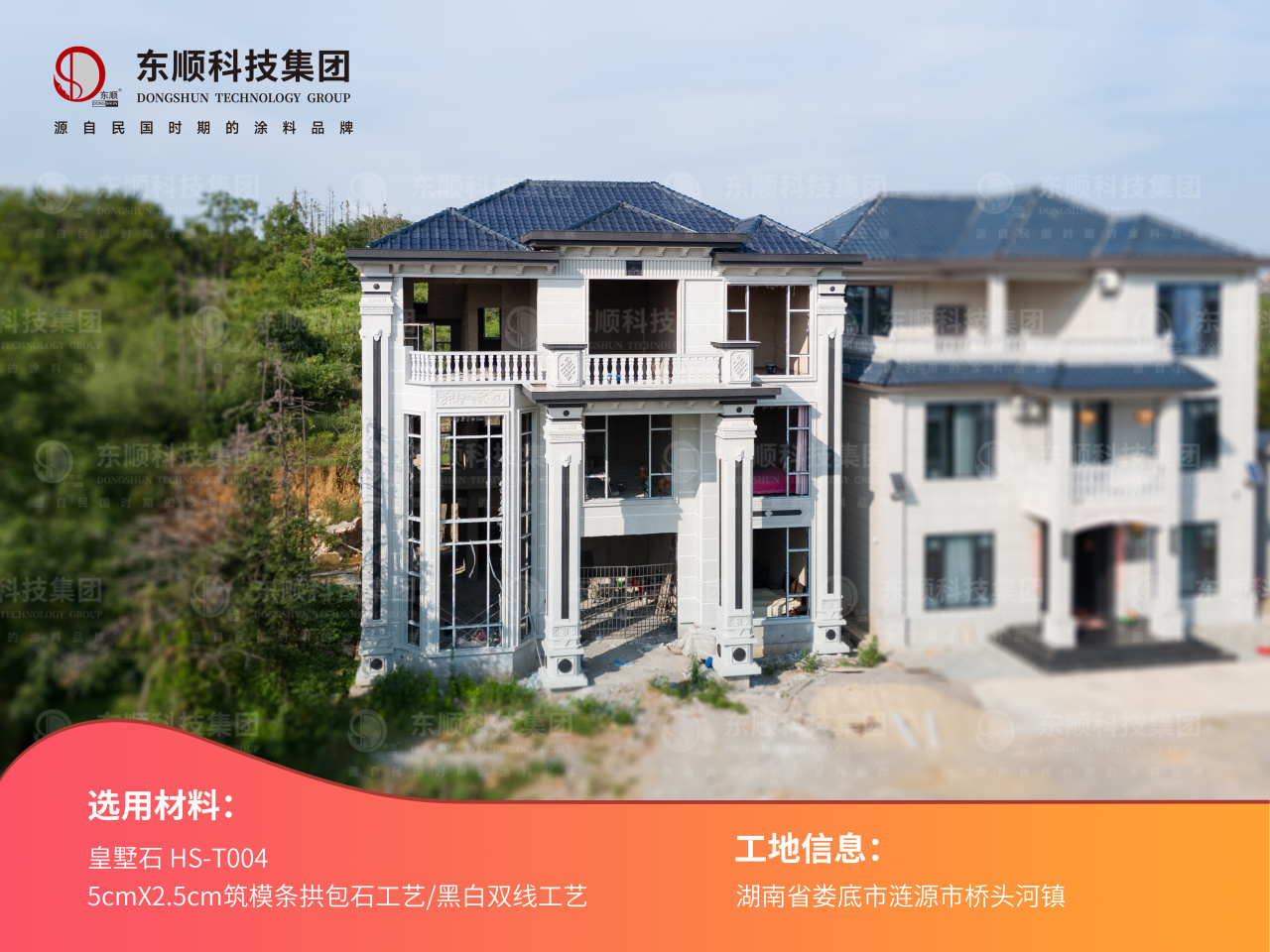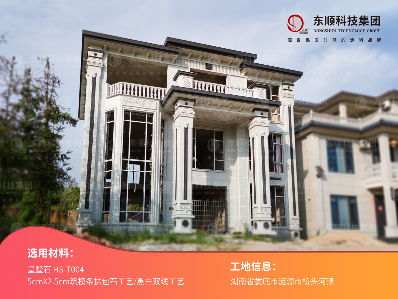 湖南娄底涟源桥头河 皇墅石别墅案例 色号:皇墅石 HS-T004 筑模条拱包石/黑白双线工艺