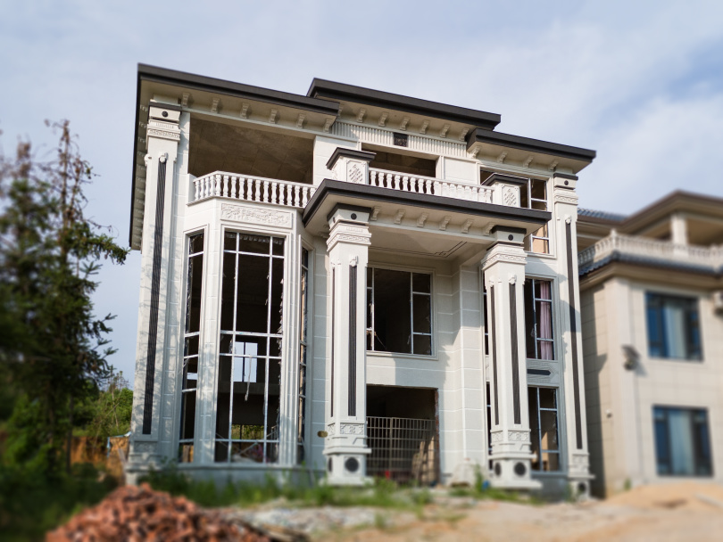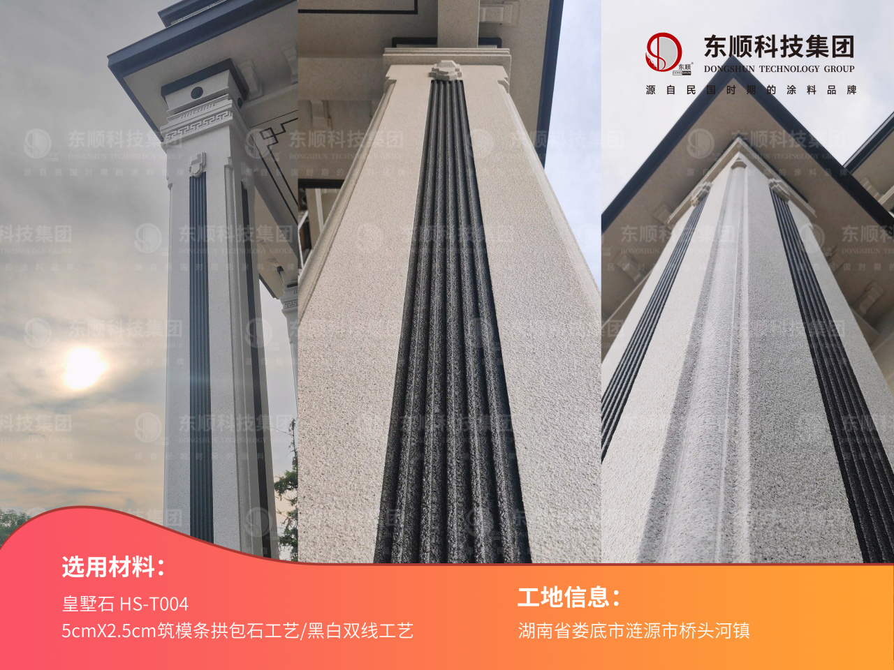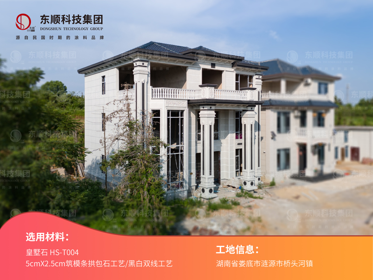 湖南娄底涟源桥头河 皇墅石别墅案例 色号:皇墅石 HS-T004 筑模条拱包石/黑白双线工艺
