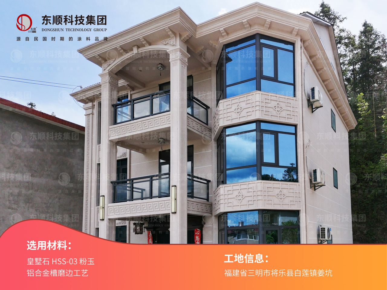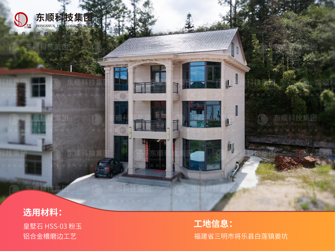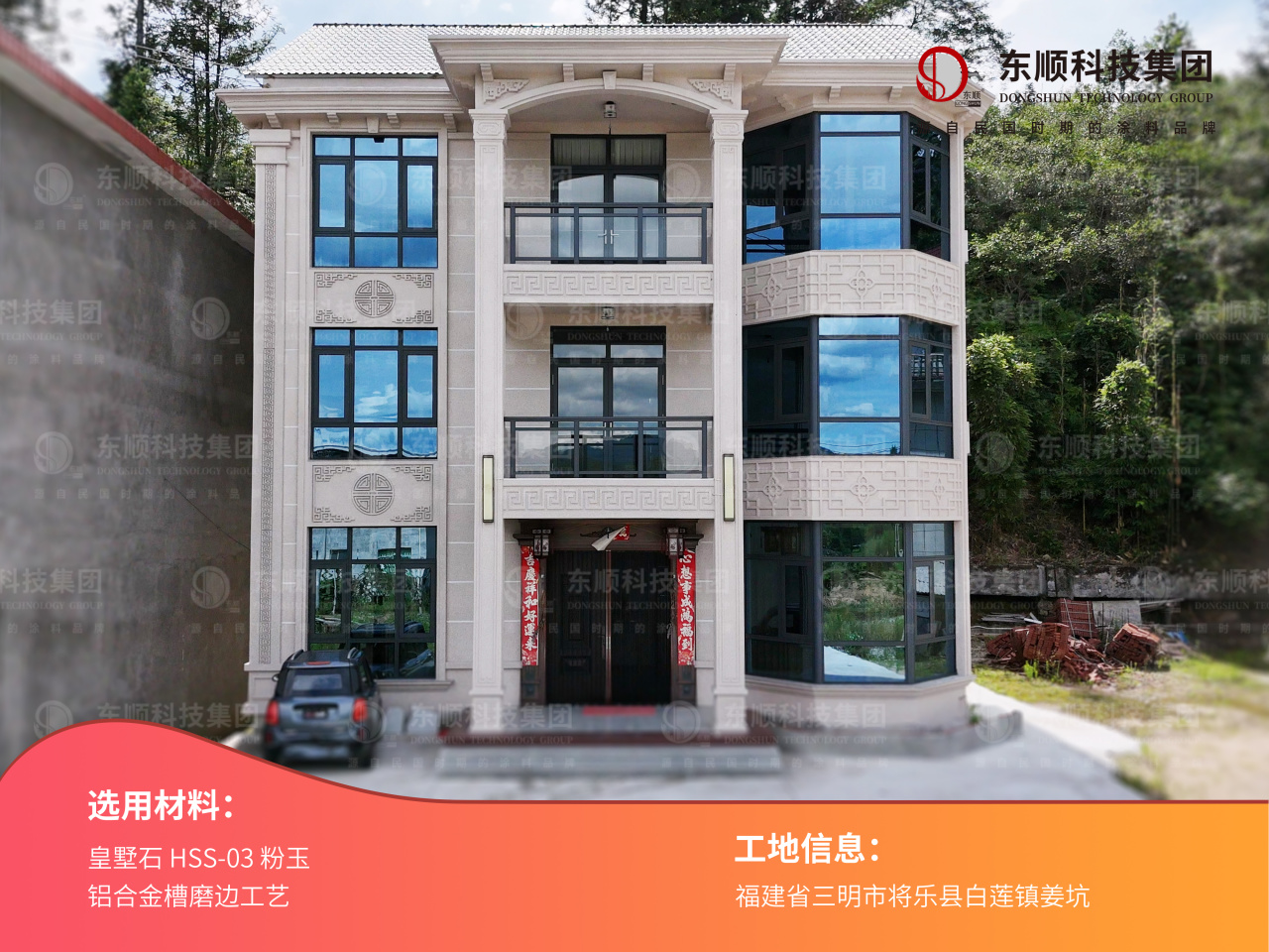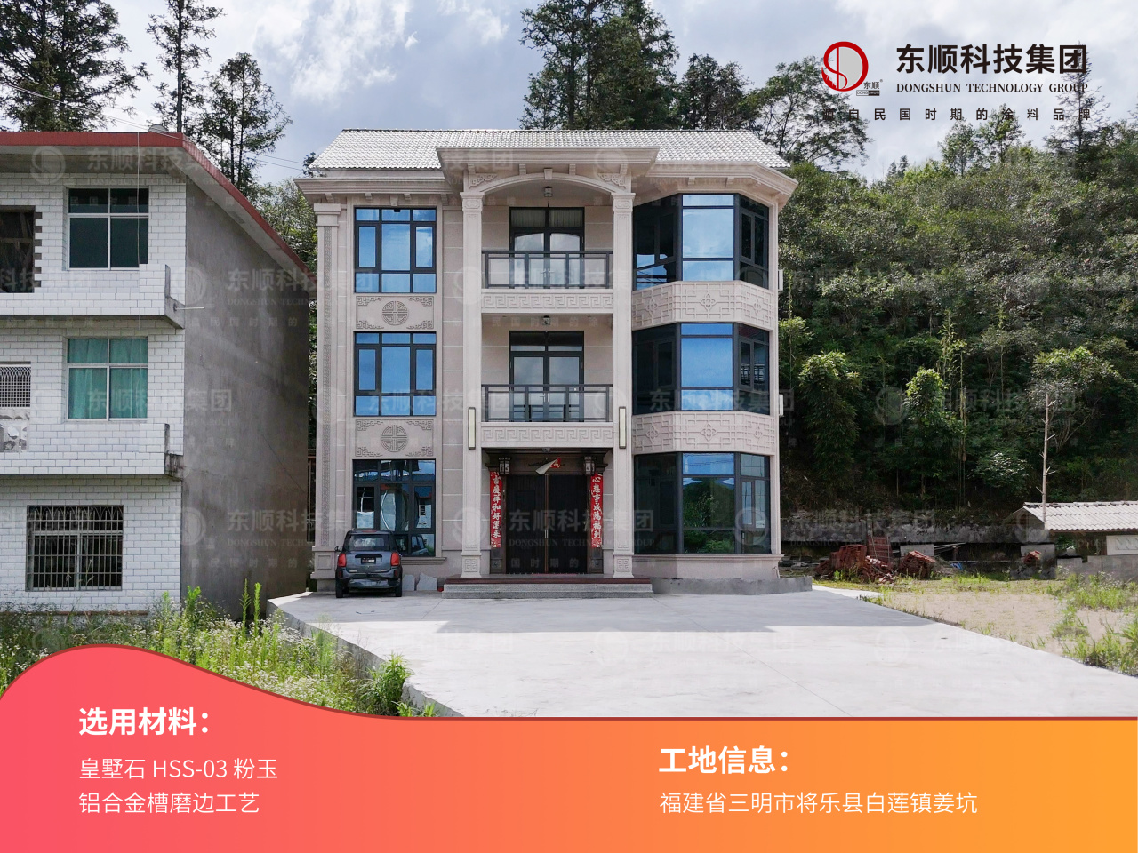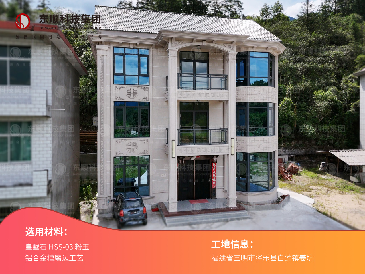 福建省三明市将乐县白莲镇姜坑 皇墅石别墅案例 色号:HSS-03 粉玉 铝合金槽磨边工艺