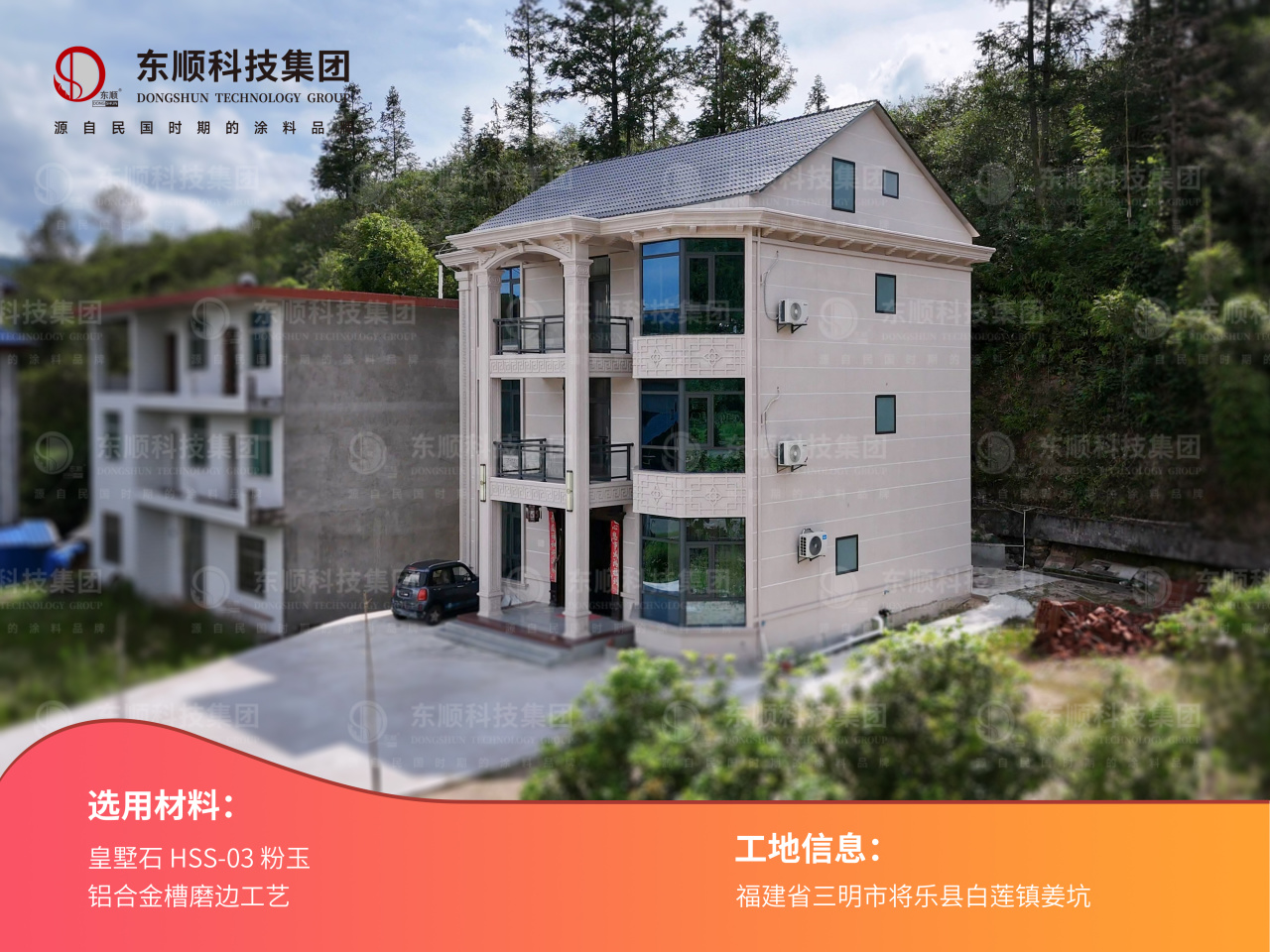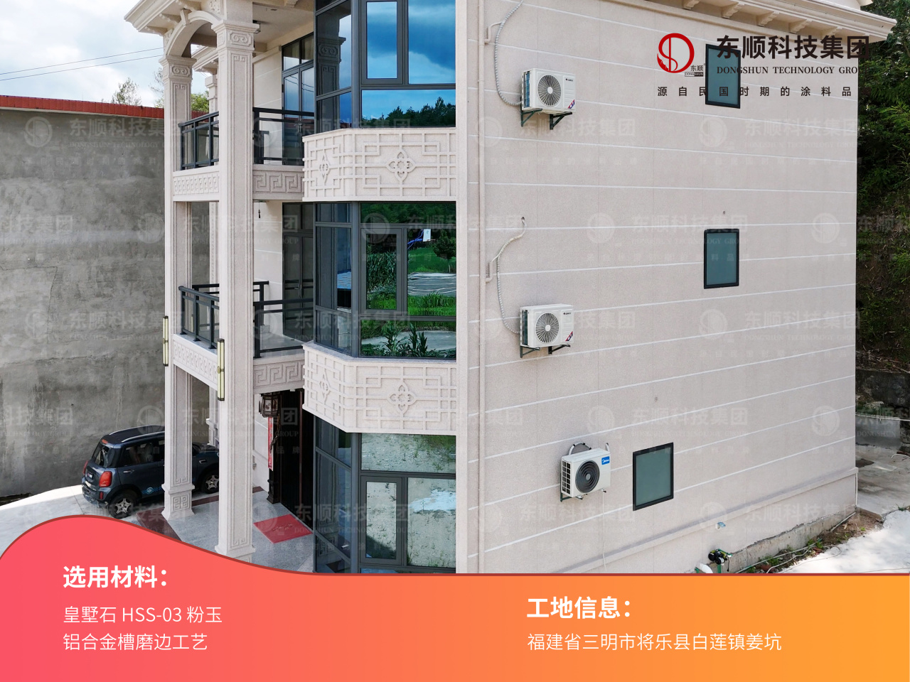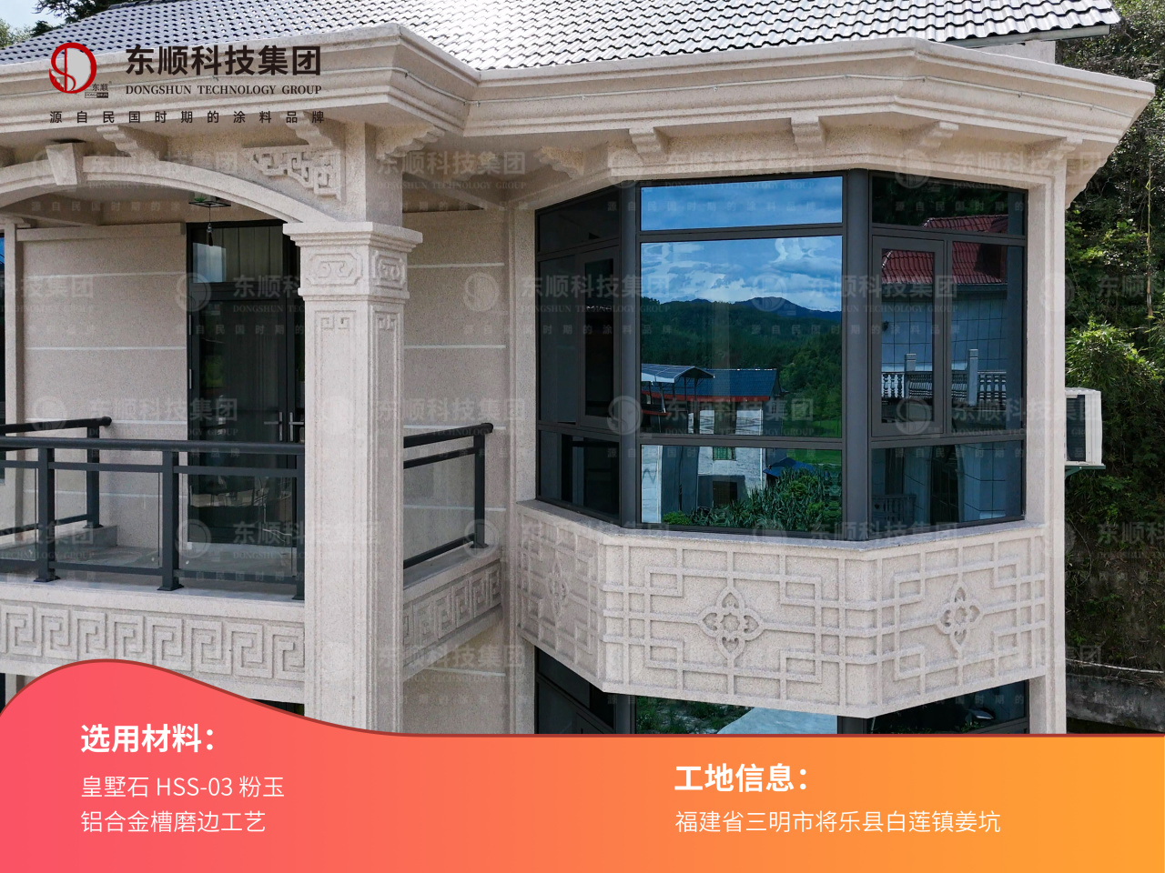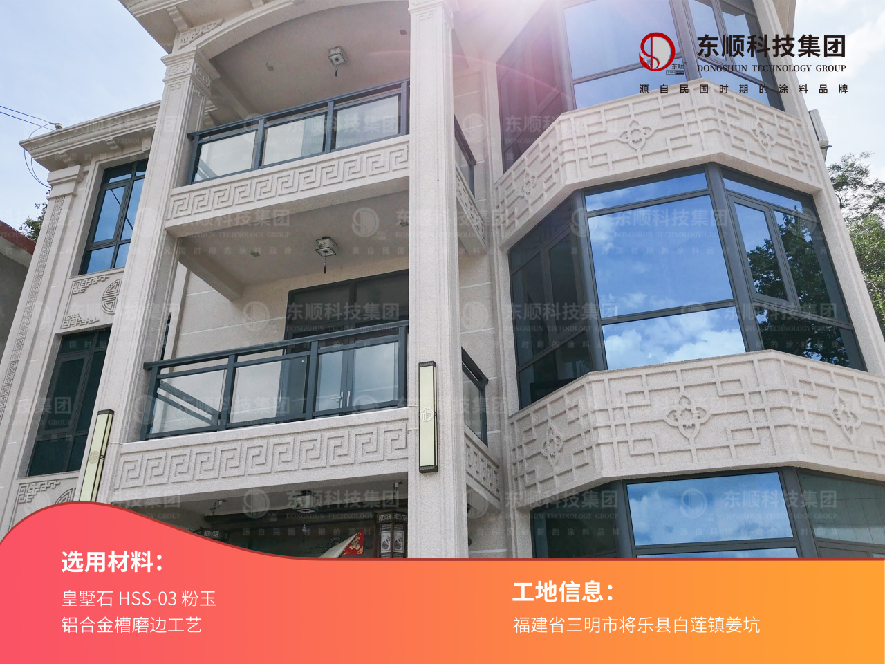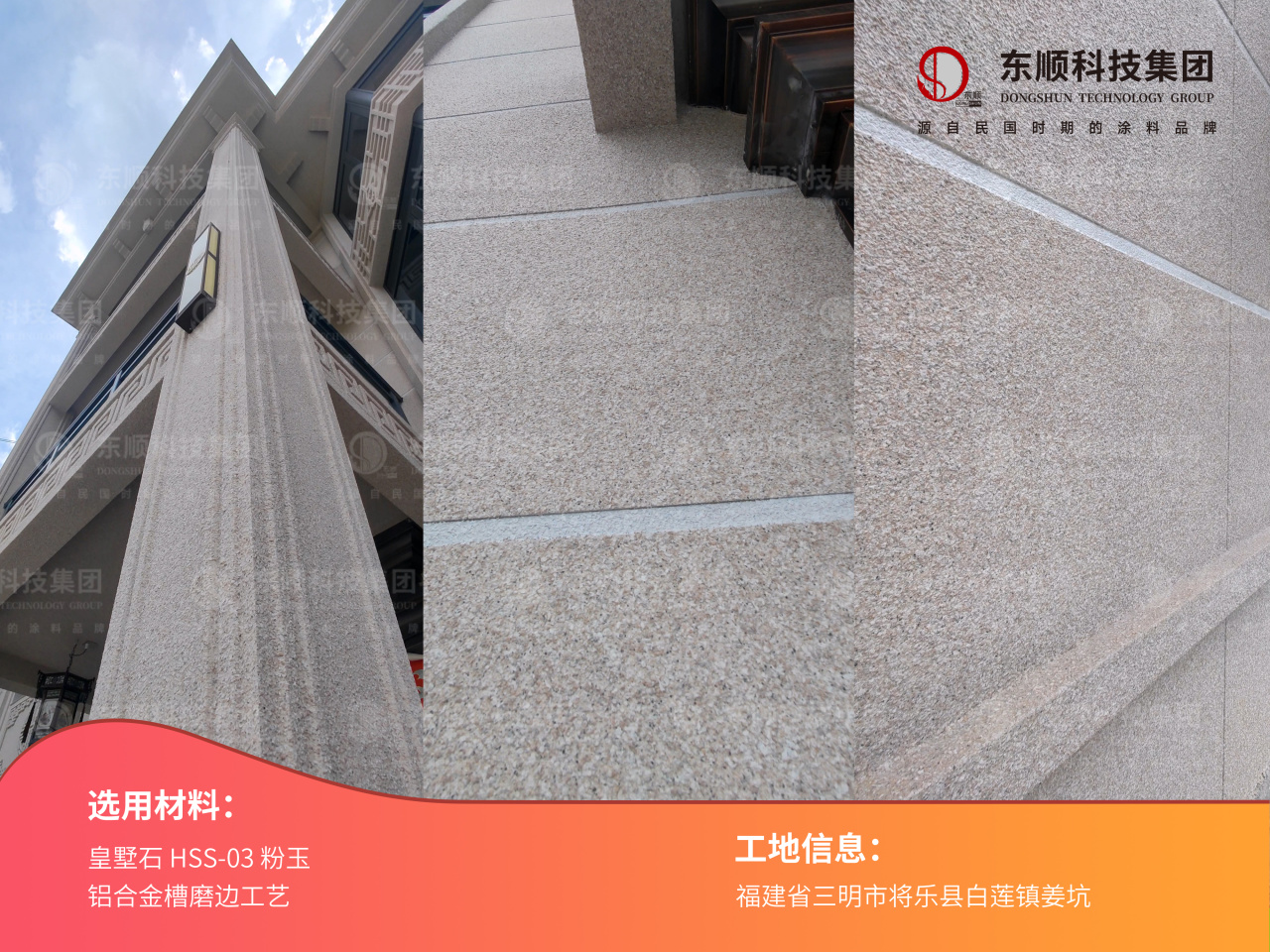 福建省三明市将乐县白莲镇姜坑 皇墅石别墅案例 色号:HSS-03 粉玉 铝合金槽磨边工艺