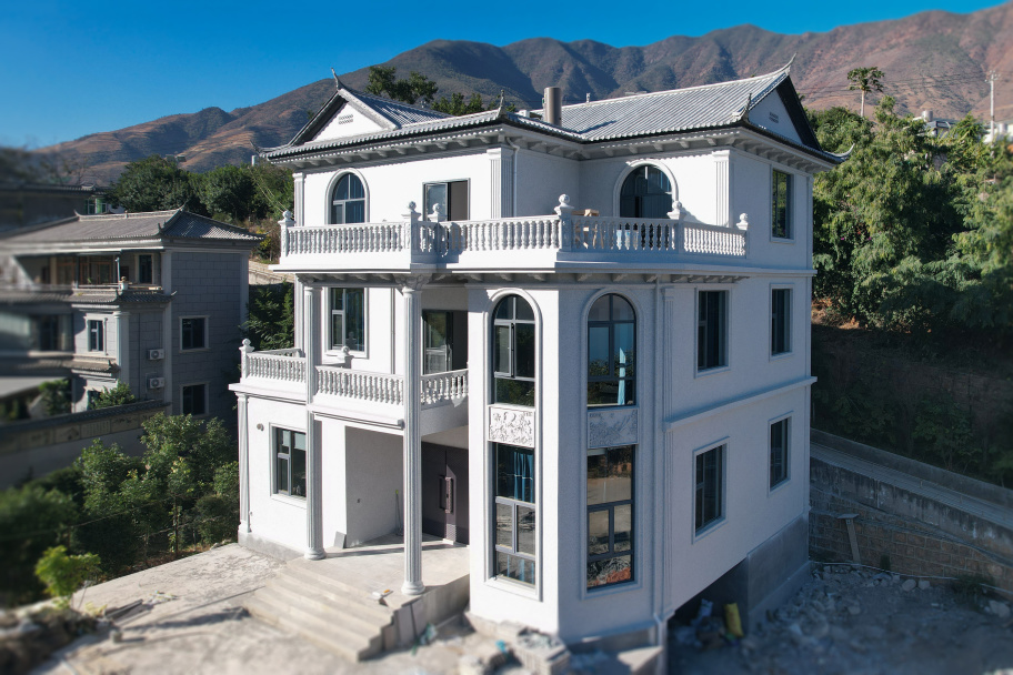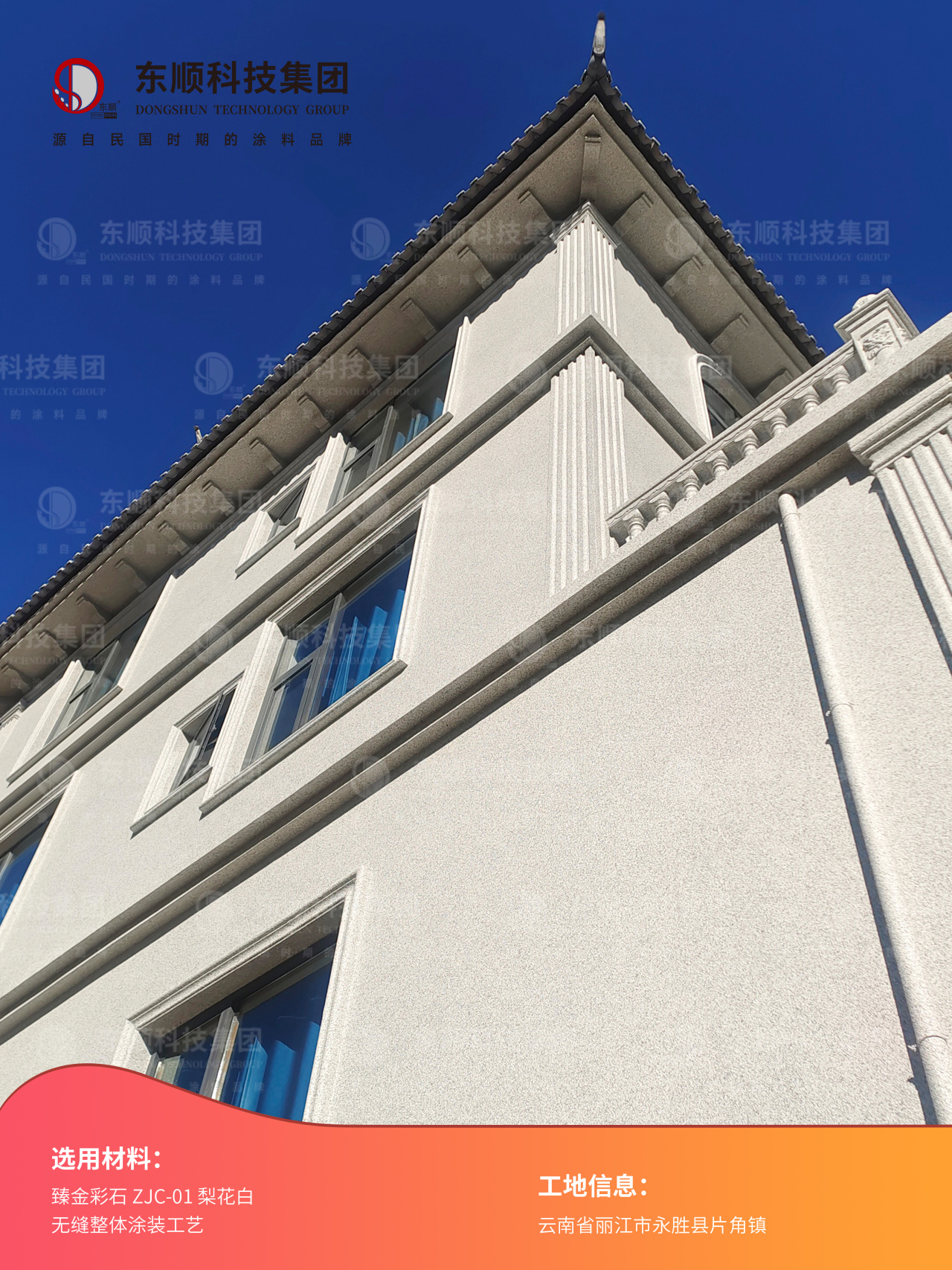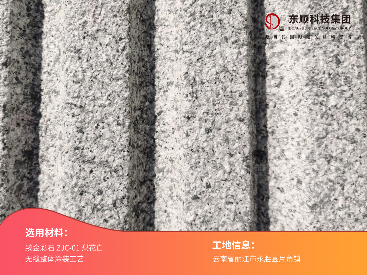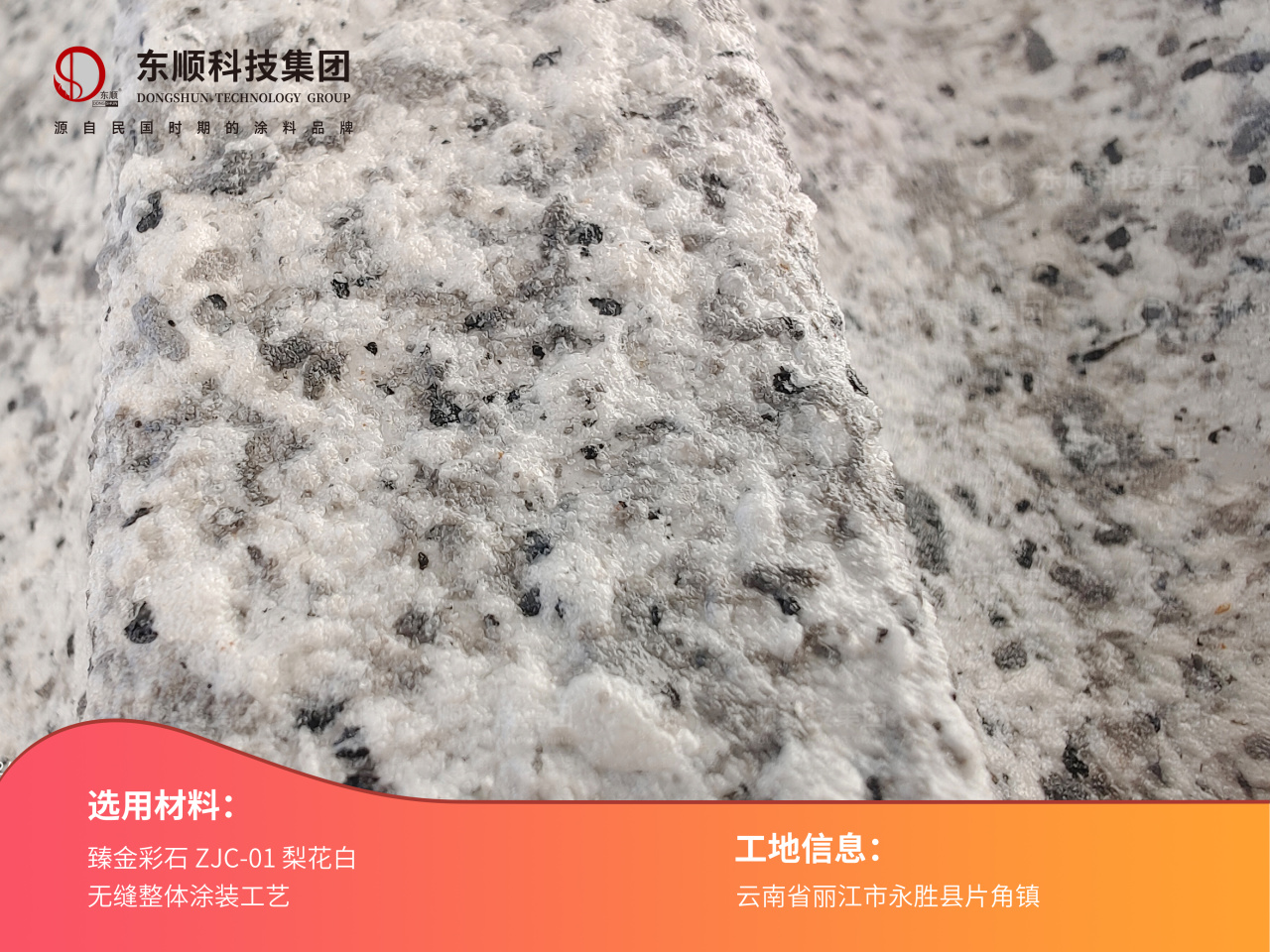 云南省丽江市永胜县片角镇 臻金彩石别墅案例 色号:ZJC-01梨花白 无缝整体涂装工艺