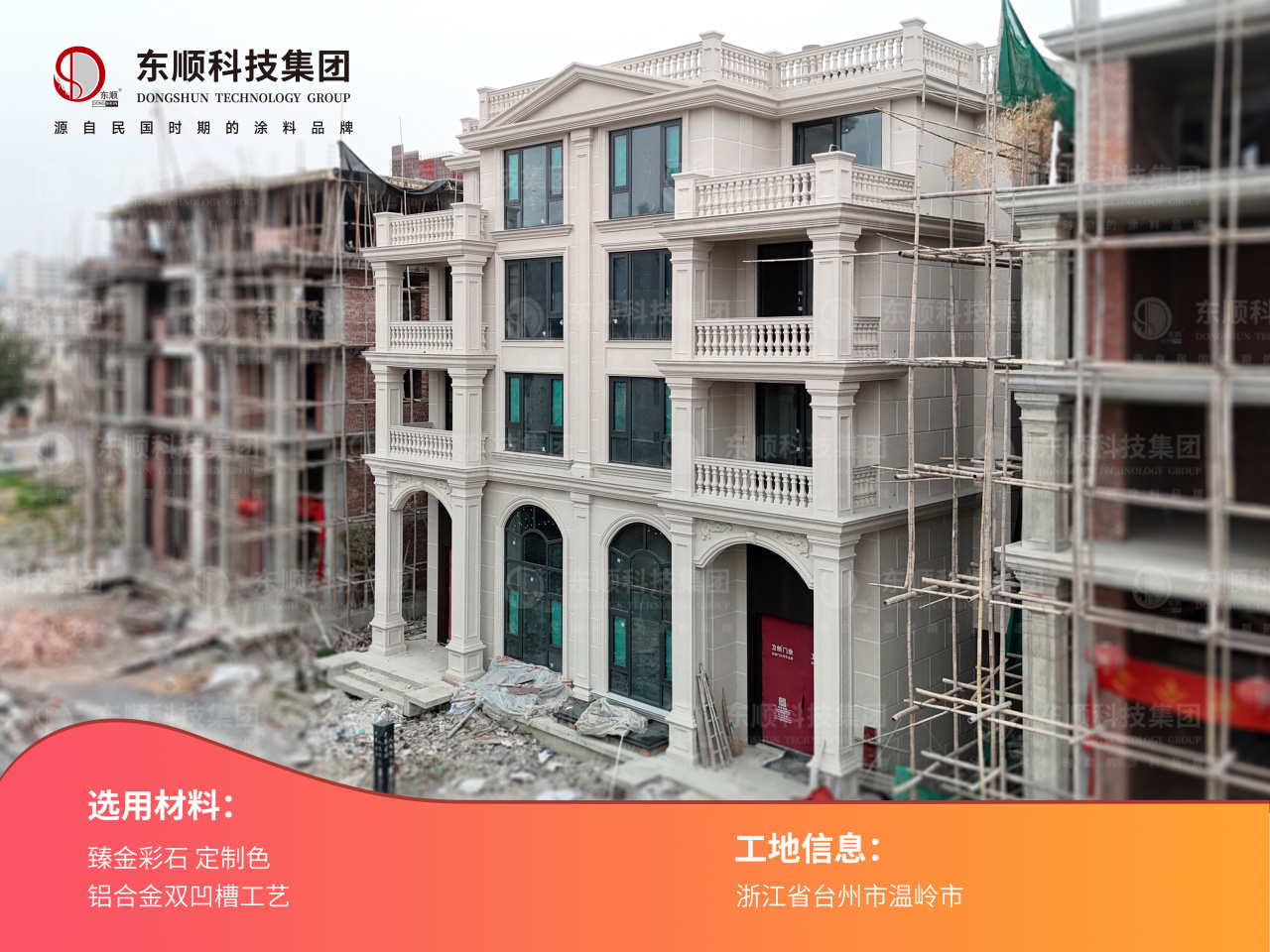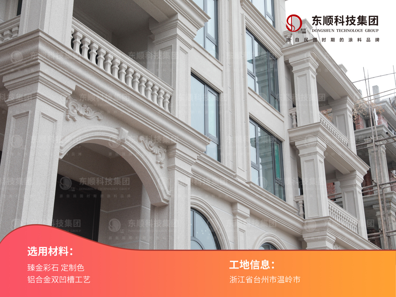 浙江省台州市温岭市 臻金彩石别墅案例 色号:定制色 铝合金双凹槽工艺