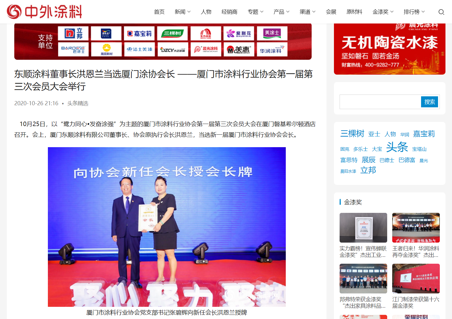 东顺涂料董事长洪恩兰当选厦涂协会长