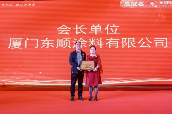 厦门市涂料行业协会第二届理(监)事就职典礼庄严隆重,典礼上授牌仪式庄重有序,理(监)事会成员的就职神圣而光荣。厦门东顺涂料有限公司董事长洪恩兰当选为会长、厦门炬源涂装工程有限公司董事长蔡金梅当选为监事长。三棵树涂料股份有限公司和固克节能科技股份有限公司分别当选为名誉会长单位,固克节能科技股份有限公司董事长林汶辉当选为执行会长,厦门昕方格文化传播有限公司总经理黄伯伟当选为秘书长 。